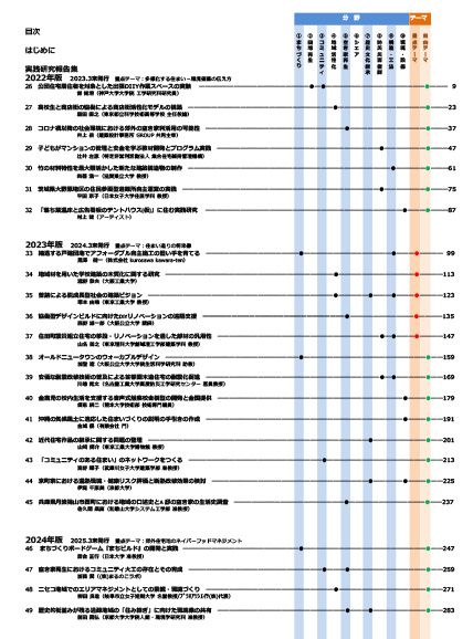 『住総研 研究論文集・実践研究報告集』のうち、『実践研究報告書』を写真・図を拡大及びカラーにし、読みやすい形に編集いたしました。
